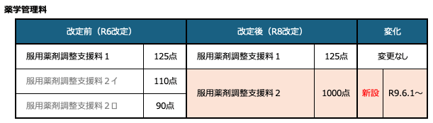 そこで今回は、令和8年度調剤報酬改定で生まれ変わる「服用薬剤調整支援料2」について徹底解説!したいと思います。(注意:新しい「服用薬剤調整支援料2」が算定可能となるのは令和9年6月1日となっており、施行1年後からです)